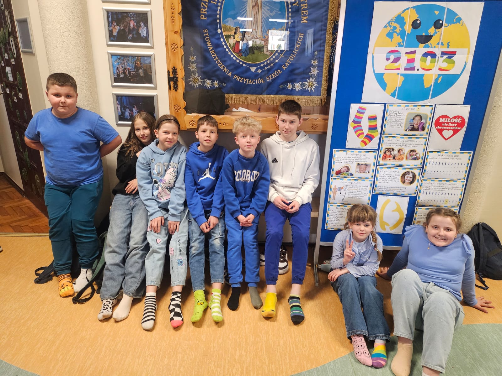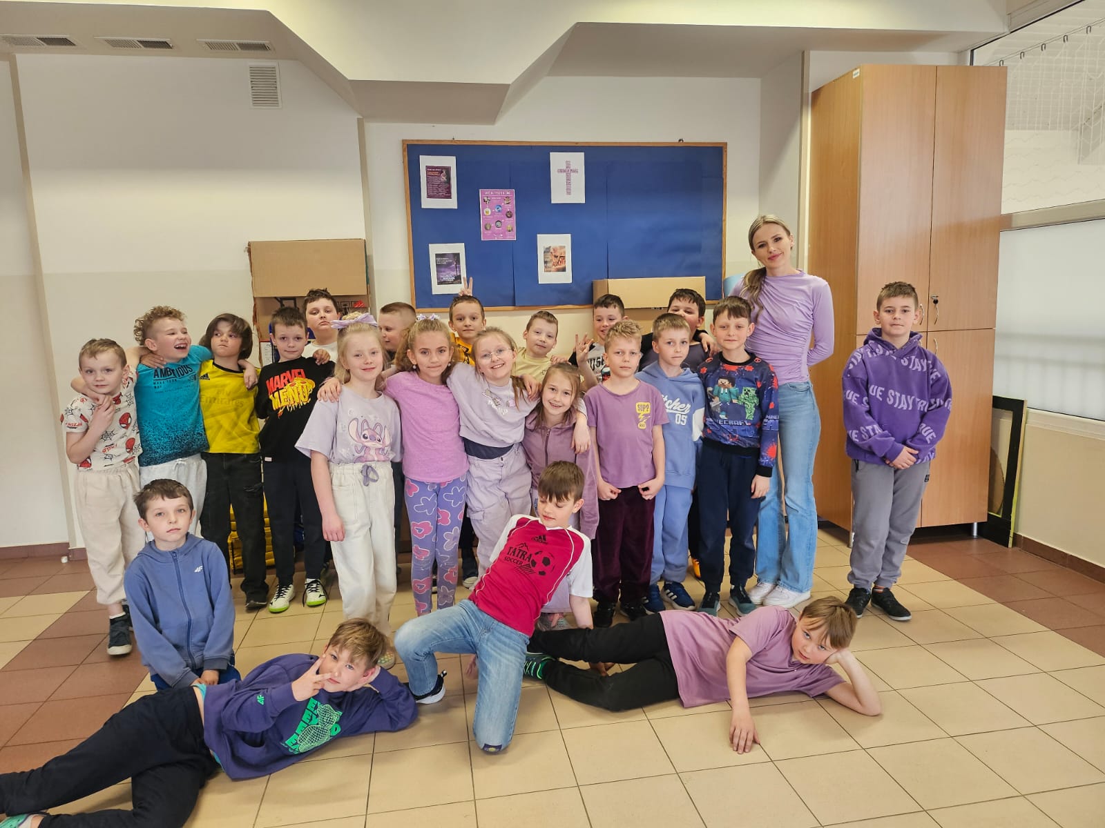 Pierwszy dzień wiosny zamienił naszą szkołę w prawdziwy festiwal barw dzięki losowaniu kolorów przypisanych do każdej z klas. Korytarze wypełniły się zgranymi grupami ubranymi od stóp do głów w soczyste zielenie, słoneczne żółcie i intensywne błękity. Radosnemu powitaniu pory roku towarzyszył ważny gest solidarności z osobami z zespołem Downa. Zgodnie z tradycją założyliśmy kolorowe skarpetki nie do pary, które stały się symbolem akceptacji dla różnorodności. Ta wspólna akcja pokazała, że potrafimy się świetnie bawić, nie zapominając o wzajemnym szacunku i empatii.
