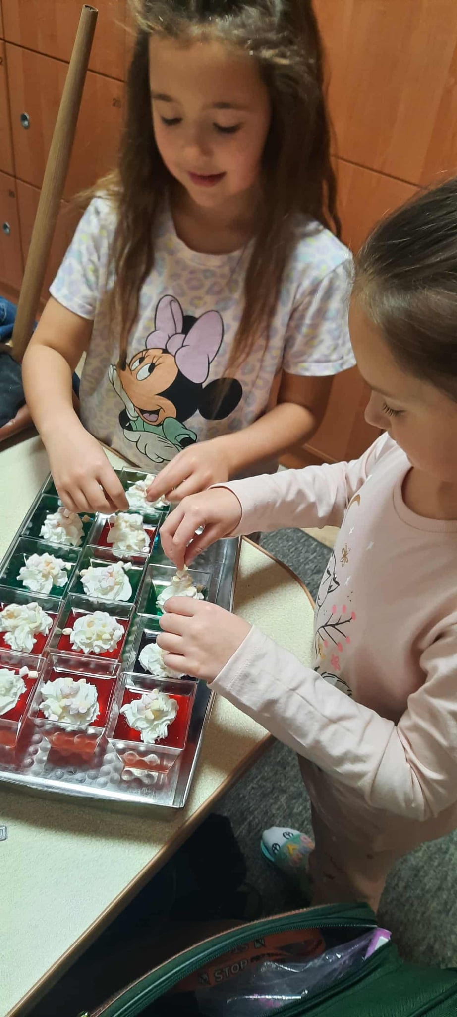 Wieczór rozpoczął się od wspólnej kolacji, podczas której królowała oczywiście pizza – ulubiona potrawa większości uczniów. Po posiłku na stołach pojawiły się zdrowe słodkości przygotowane specjalnie z myślą o małych uczestnikach. Po kolacji Pani Agnieszka Hyży- Joniak przygotowała niespodziankę: czas na budowanie z klocków LEGO. Pierwszoklasiści tworzyli niezwykłe budowle, pojazdy i fantastyczne krainy. Pomysły dzieci nie miały końca, a wspólne tworzenie sprzyjało rozmową, współpracy i rozwijaniu wyobraźni. Nie obyło się również bez bitwy na poduchy