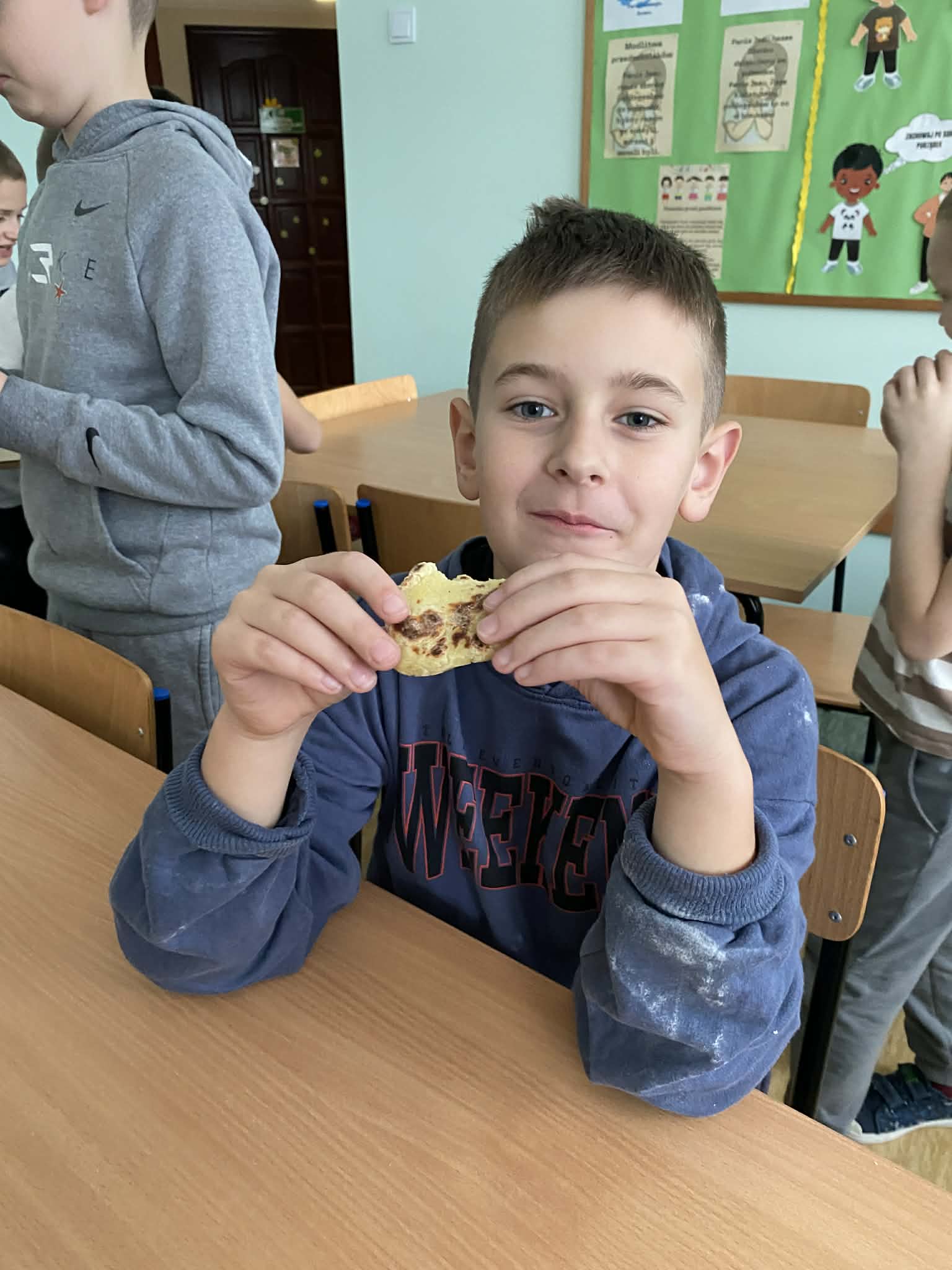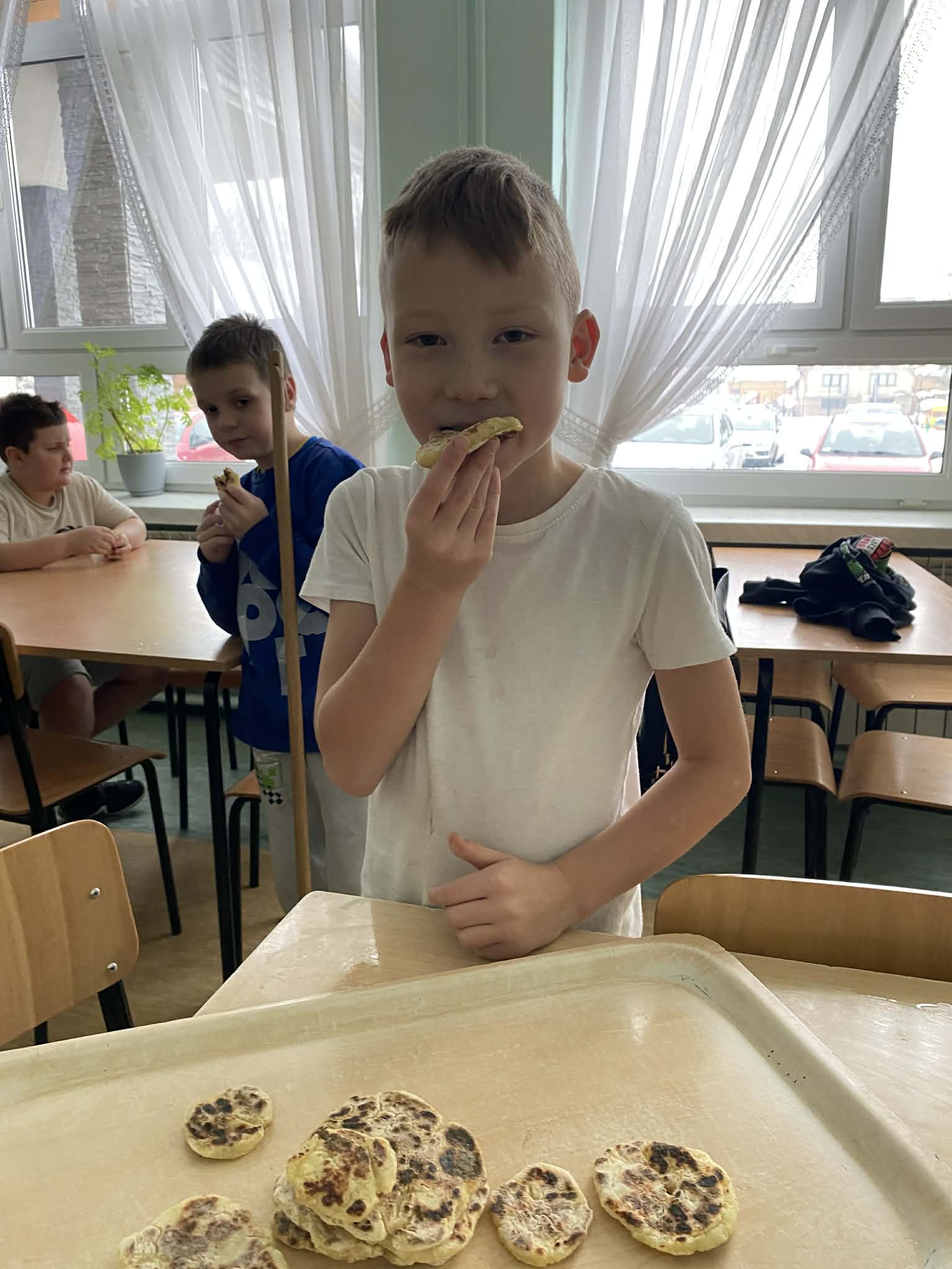 Podhalańskie moskole w wykonaniu klasy II i III ! Dziś klasa II i III miała wyjątkową okazję poznać smak i tradycję Podhala Wspólnie piekliśmy moskole podhalańskie – proste, ale niezwykle pyszne placki z ziemniaków, które od pokoleń goszczą na góralskich stołach. Było dużo radości, zapachu pieczonych moskoli i nauki o regionalnych zwyczajach Dzieci z ogromnym zaangażowaniem uczestniczyły w przygotowaniach, a efekty ich pracy smakowały wyśmienicie! Takie zajęcia to doskonała lekcja tradycji, współpracy i dobrej zabawy Brawo !