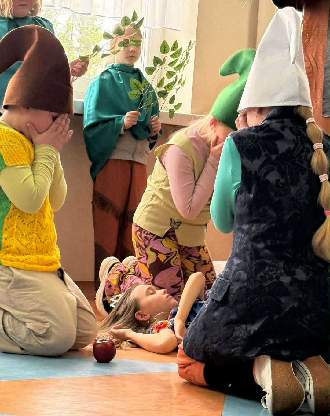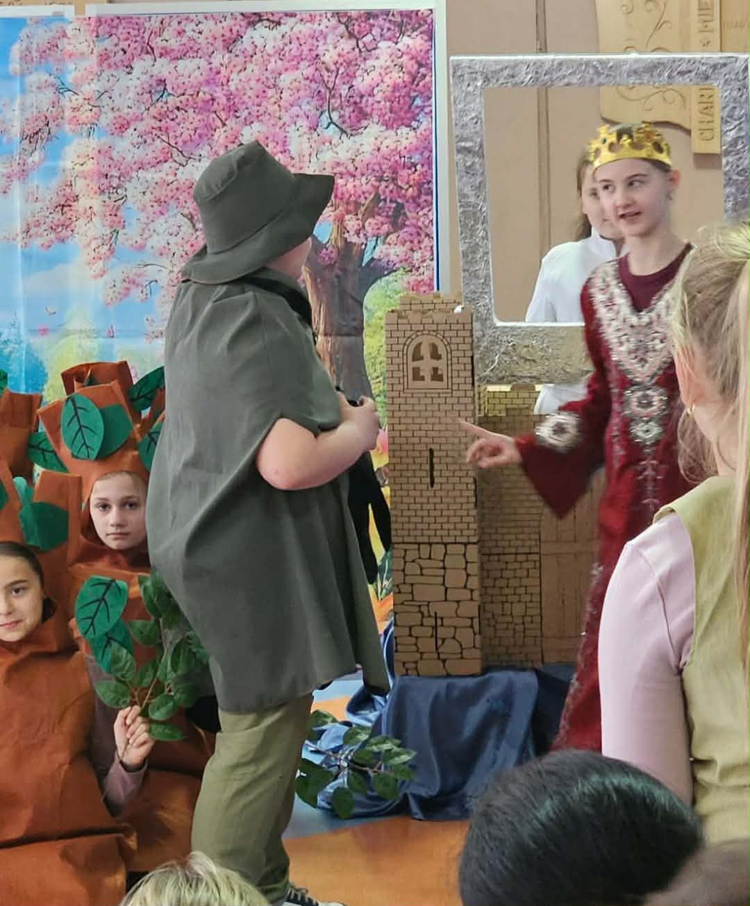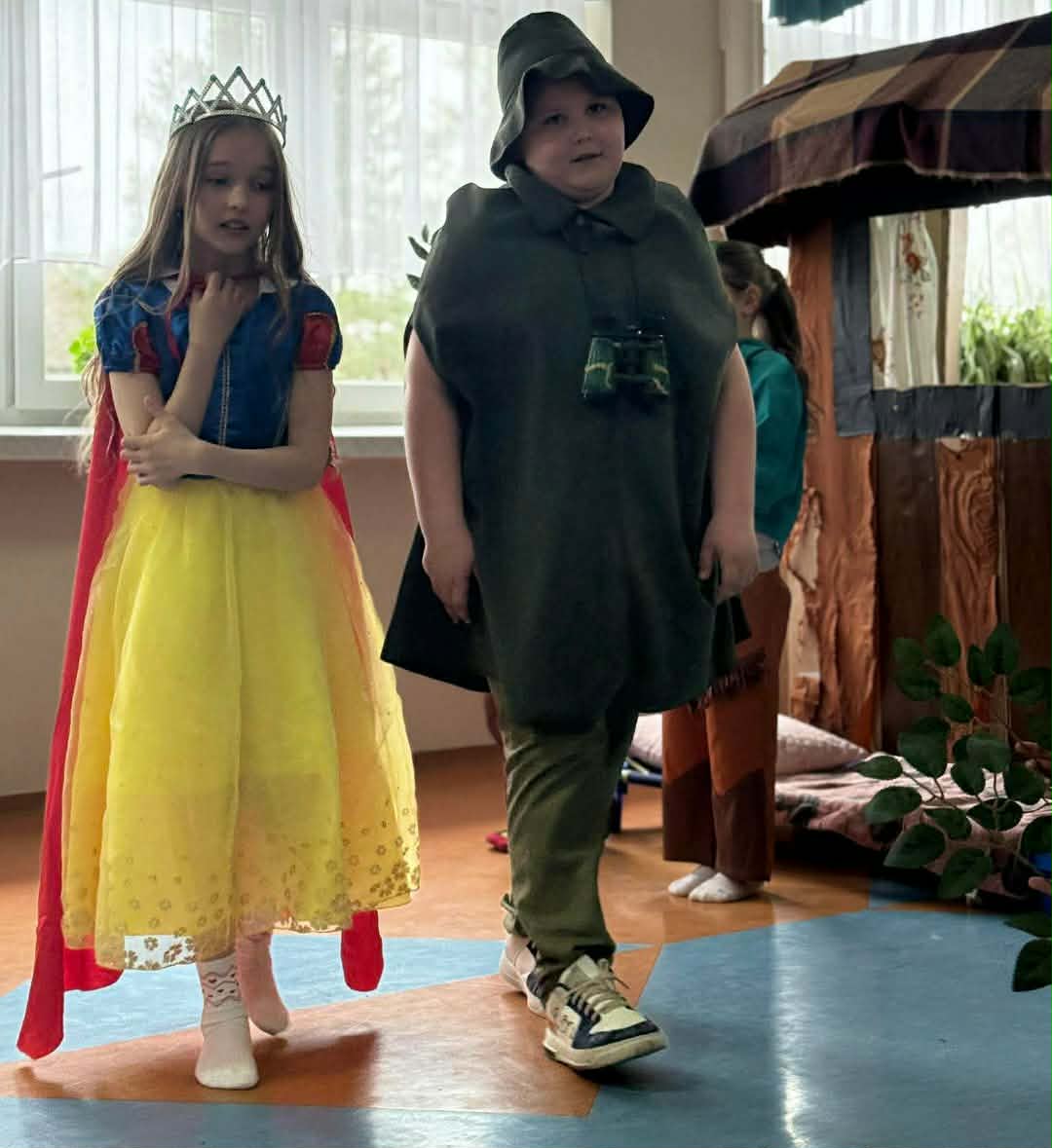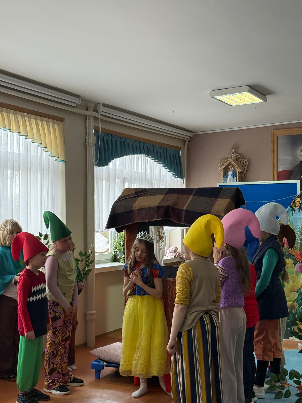 Dzisiaj nasze przedszkolaki miały okazję uczestniczyć w wyjątkowym wydarzeniu – przedstawieniu pt. „Śpiąca Królewna”, przygotowanym przez uczniów szkoły podstawowej. Spektakl dostarczył wszystkim wielu pozytywnych emocji – dzieci z zainteresowaniem śledziły losy bohaterów, podziwiały kostiumy oraz scenografię, a także aktywnie reagowały na przebieg przedstawienia.