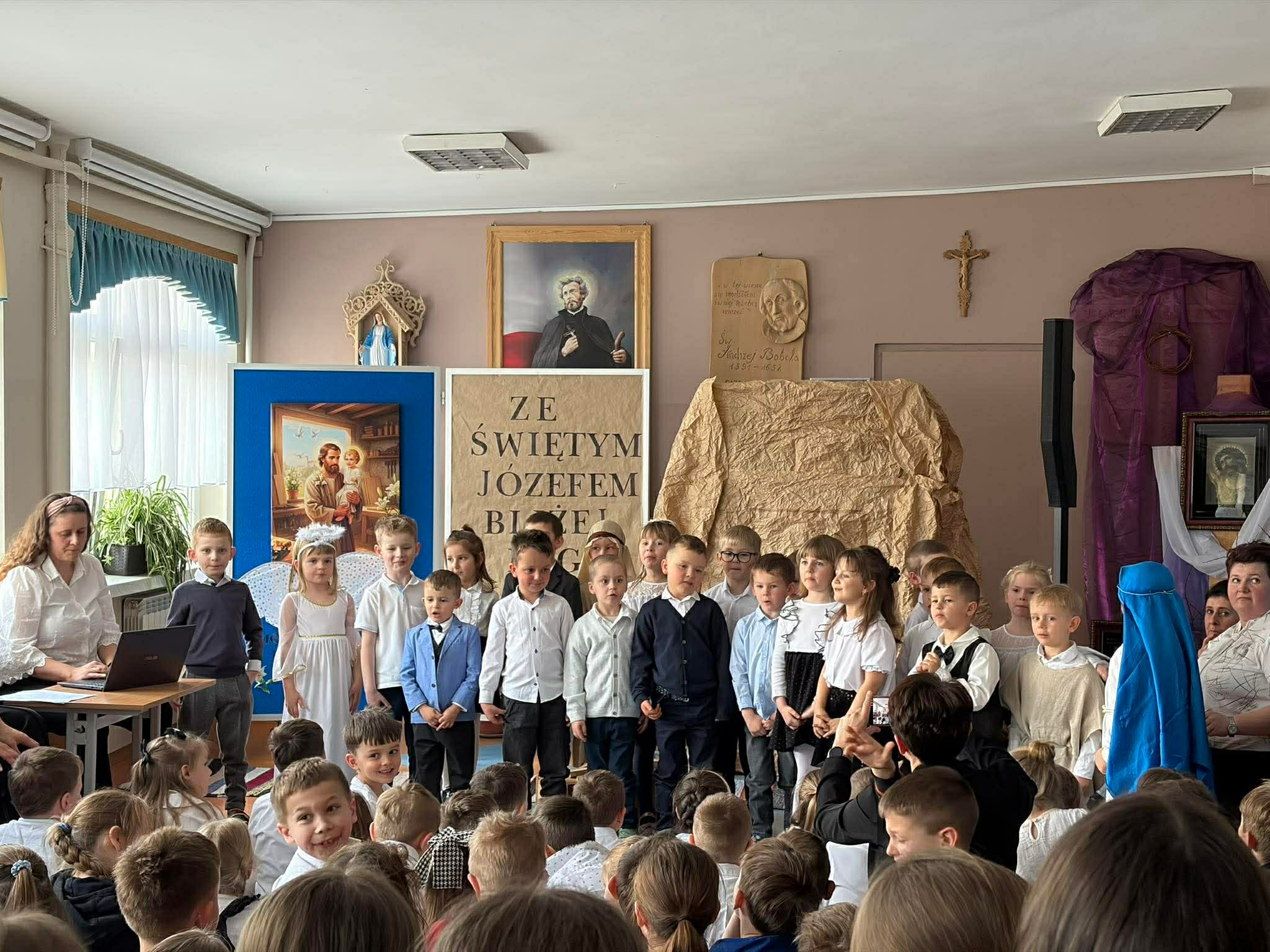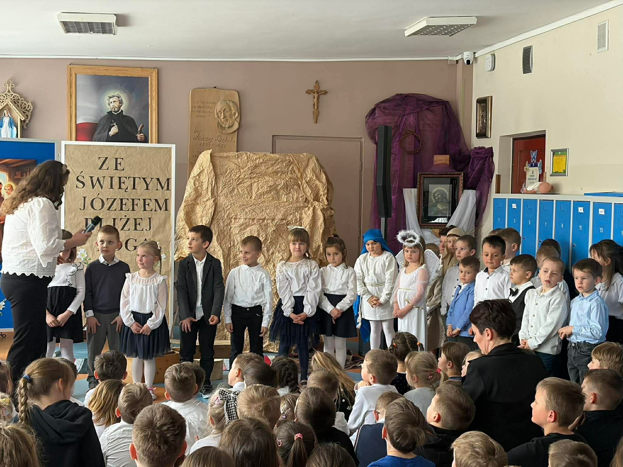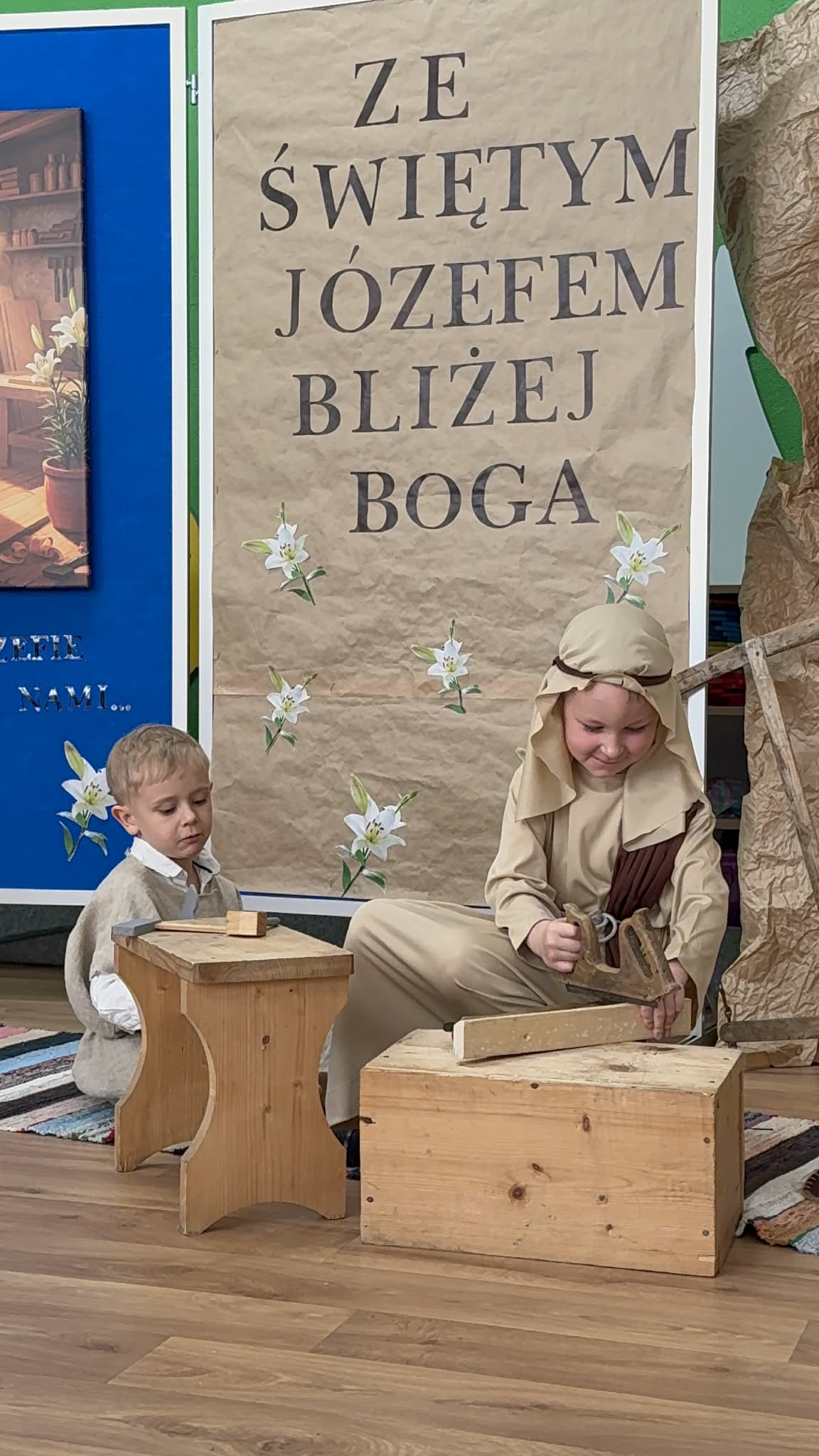 Grupa „Misie” z naszego przedszkola miała dziś zaszczyt wystąpić przed całą społecznością szkolną z okazji uroczystości Świętego Józefa Nasze przedszkolaki z ogromnym zaangażowaniem i radością zaprezentowały przygotowane przedstawienie, przybliżając postać Świętego Józefa jako opiekuna, człowieka pełnego dobroci i wzoru dla każdego z nas. Mali artyści zachwycili publiczność swoją odwagą, szczerością i pięknym występem Jesteśmy bardzo dumni z naszych „Misiów” – ich praca i zaangażowanie zostały nagrodzone gromkimi brawami Dziękujemy wszystkim, którzy pomogli w przygotowaniu tego wyjątkowego wydarzenia!