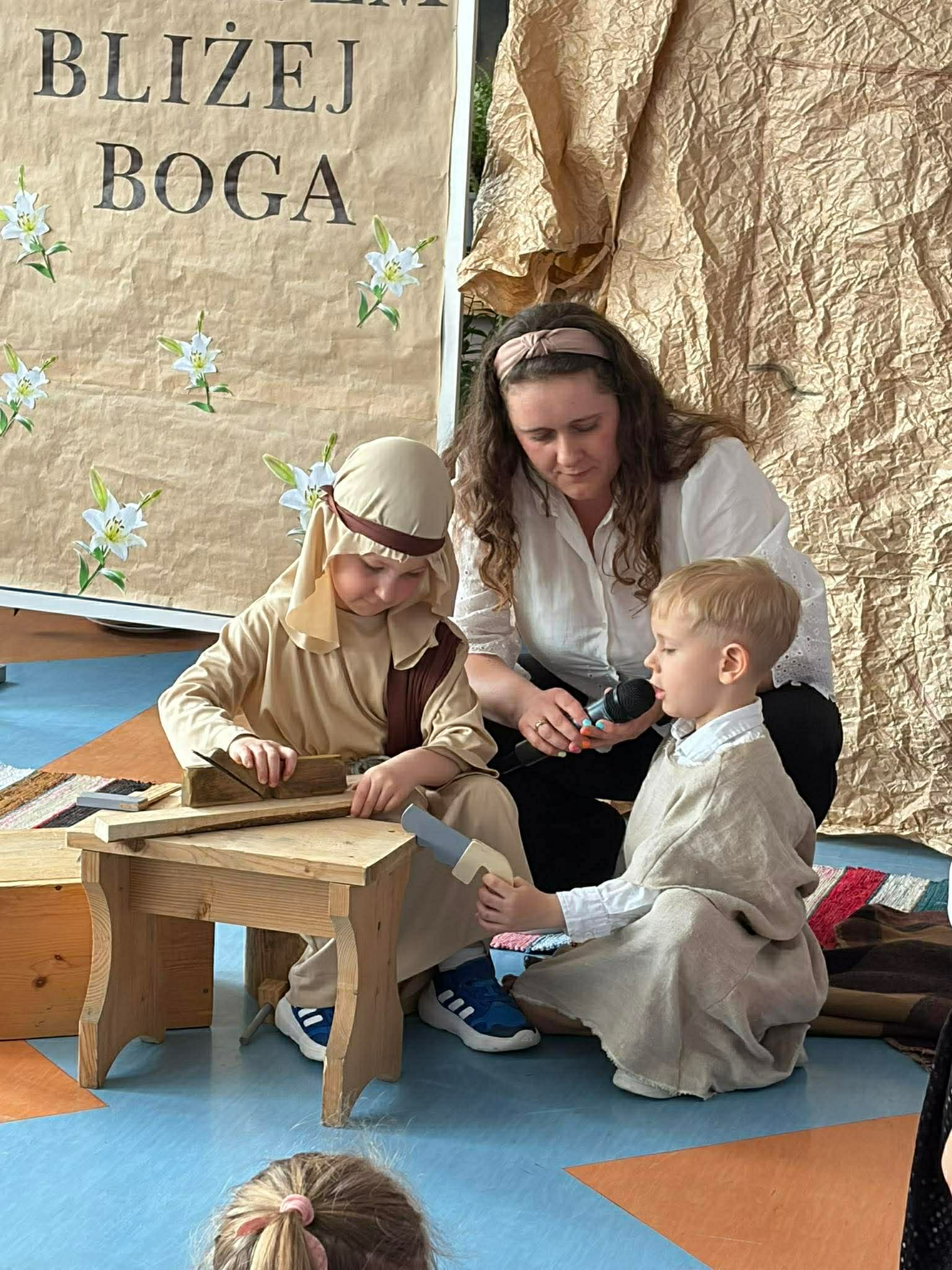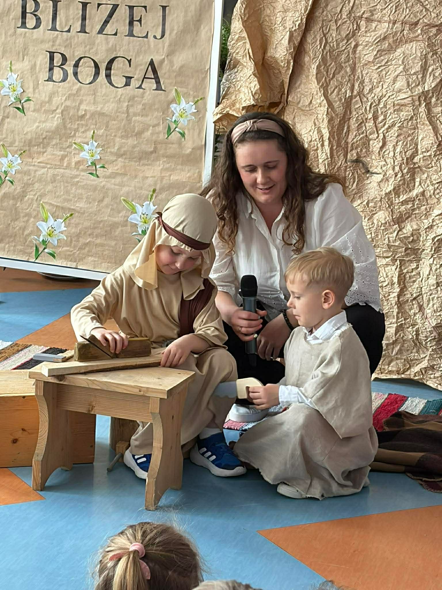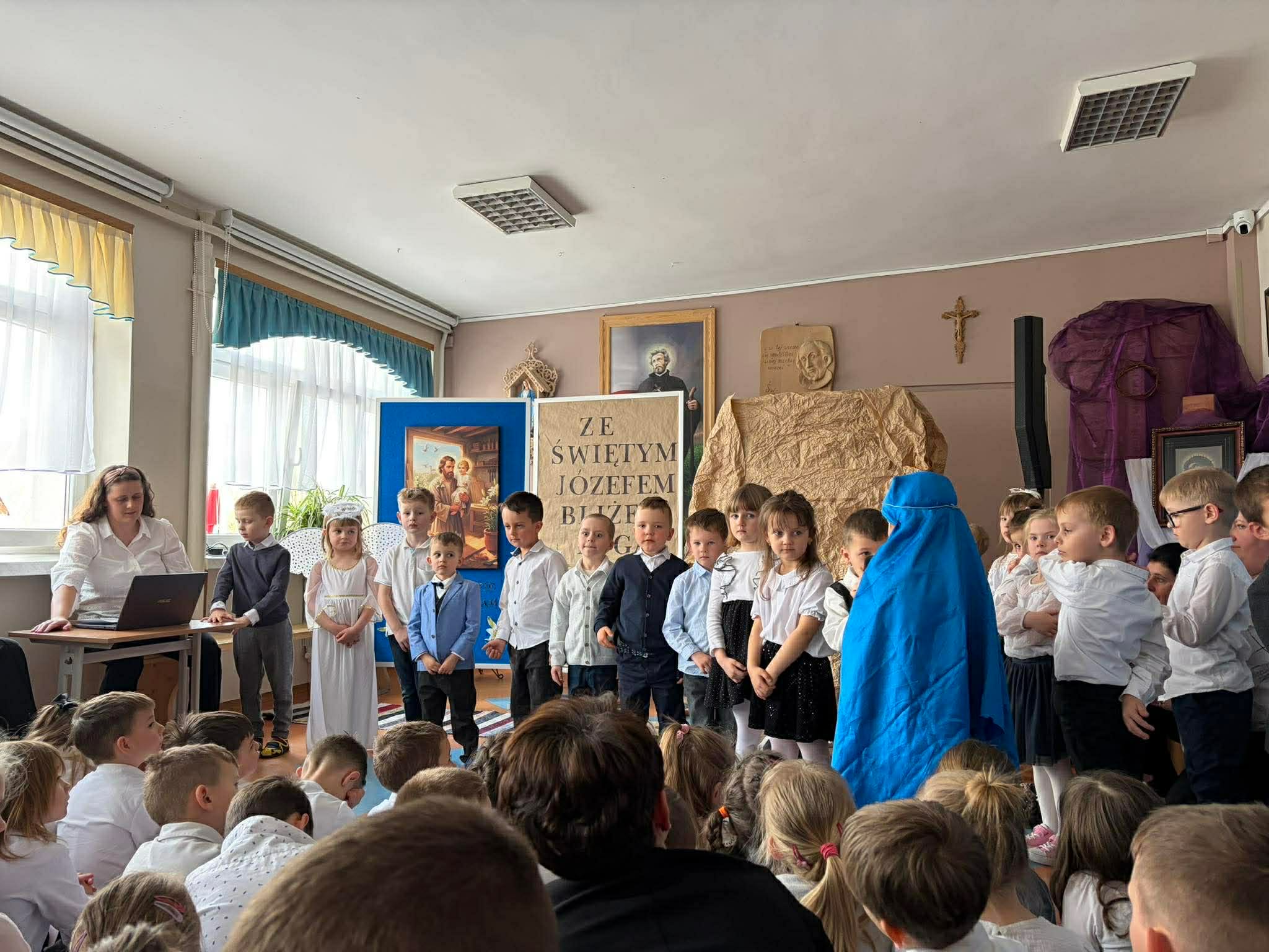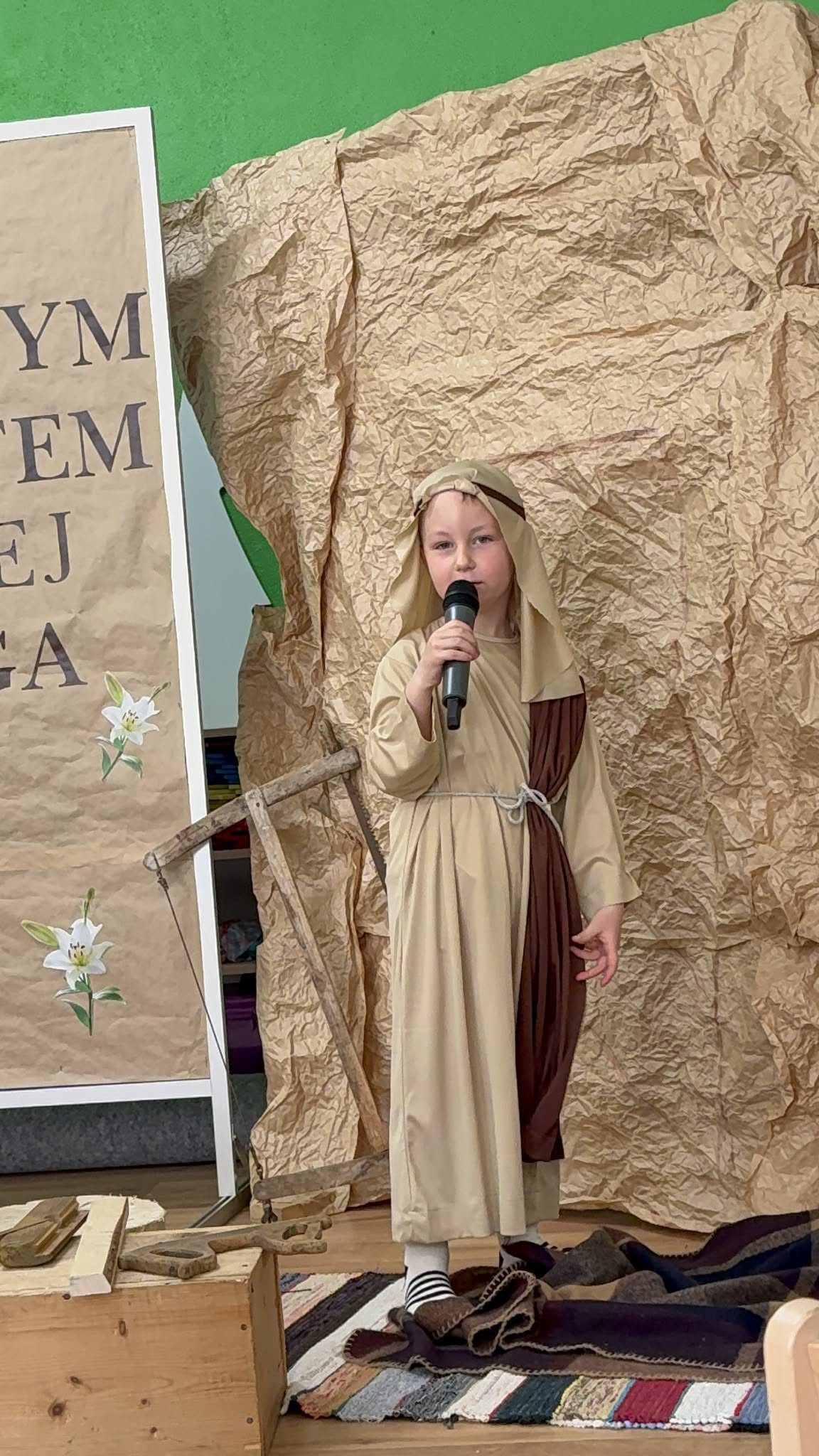 Grupa „Misie” z naszego przedszkola miała dziś zaszczyt wystąpić przed całą społecznością szkolną z okazji uroczystości Świętego Józefa Nasze przedszkolaki z ogromnym zaangażowaniem i radością zaprezentowały przygotowane przedstawienie, przybliżając postać Świętego Józefa jako opiekuna, człowieka pełnego dobroci i wzoru dla każdego z nas. Mali artyści zachwycili publiczność swoją odwagą, szczerością i pięknym występem Jesteśmy bardzo dumni z naszych „Misiów” – ich praca i zaangażowanie zostały nagrodzone gromkimi brawami Dziękujemy wszystkim, którzy pomogli w przygotowaniu tego wyjątkowego wydarzenia!
