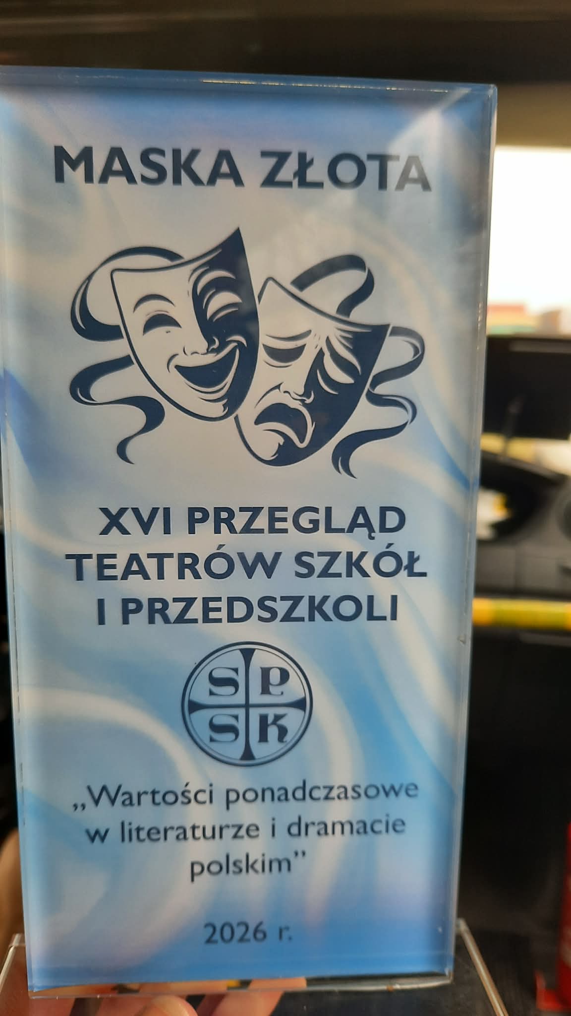 9 kwietnia 2026r. był niesamowitym dniem! Zdobycie Złotej Maski przez grupę teatralną Fantazja na XVI Przeglądzie Teatrów Szkół SPSK w Wojniczu to moment czystej euforii. Gdy przedstawiono wyniki, niedowierzanie szybko ustąpiło miejsca ogromnej radości. Ogromne wyróżnienie potwierdza, że każda godzina próby i serce włożone w spektakl miały sens. Był to już nasz kolejny występ w Wojniczu zakończony Złotą Maską.